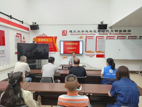 6月15日下午,理工大水运社区党支部在社区会议室开展主题教育学习活动,由支部书记陈专主持,全体社区工作人员参加。