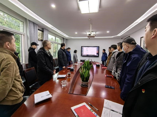 12月14日下午,后勤党支部在综合楼210会议室开展主题党日活动。全体党员佩戴党徽参加活动。