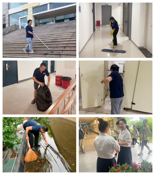 1.完成各教学楼、图书馆、实验楼、阶梯教室等各楼栋日常保洁工作:航海楼及主楼教室173间、教师休息室13间、厕所84间、楼梯77处;