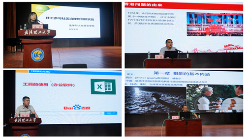学校法学与人文社会学院秦琴教授以《社会工作参与社区治理的创新实践》为题,从社会工作的起源及社会生活的创新实践,结合留学经历及鲜活案例给予高水平指导。学校能动学院张彦老师结合他参与国家级课题申报积累的丰富的办公软件使用经验,在《办公数据及软件使用技巧》课程中巧借案例传授妙招。武汉大学法学院副院长祝捷教授《一国两制和香港国家安全立法》讲座将香港问题历史根源和现实问题娓娓道来,从全局地高度分析了国安立法的要义。余区管委会副主任王欣以《手机摄影的理念与实践》为题,从美学社会学前沿理论入手,将手机摄影和现当代照相机基本原理相结合,分析手机记录当下工作和生活的可行路径。