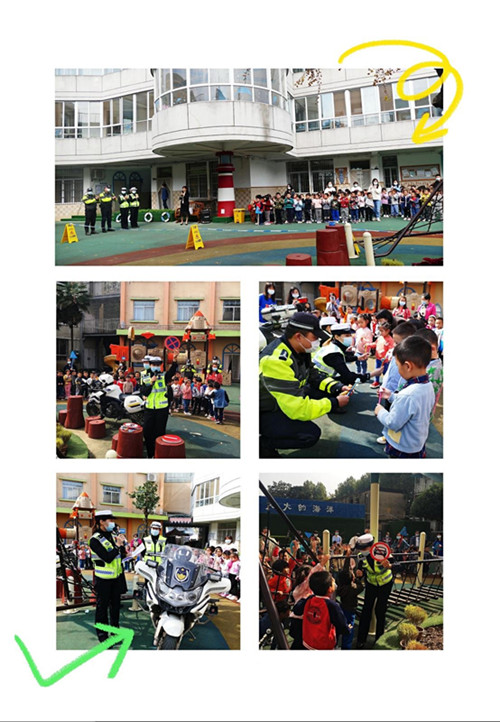 精心组织,提前部署。为将交通安全教育工作做实,幼儿园安全部门制定详细计划,创新思路,将专业交警和大学学科信息化融入幼儿安全教育。10月初引导教学老师在班级开展“交通安全我知行”教学活动,同时积极在家长群宣传教育,让家长和孩子们共同学习交通安全知识。10月27日上午邀请交警大队警察来园开展交通安全演练。