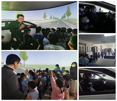 道路模拟,我是小司机。中心张干副主任带领孩子们参观了智能驾驶实验平台,介绍ITS目前正在研究无人驾驶技术,希望小朋友好好学习,长到后也能来中心做先进的研究。随后,通过现场实景模拟马路场景,亲自讲授开展交通安全知识,如小朋友在马路上要靠边行走、看到车辆要避让、坐机动车时要系好儿童安全带,做好安全防护等。并让孩子们亲身体验模拟驾驶小汽车,感受了一把“我是小司机”的快乐。