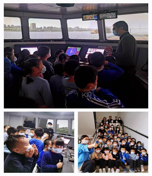 水路模拟,我是小船长。随后,中心郑茂老师热情的带着孩子们来到航海模拟驾驶舱,询问孩子们:“看到前方有船来,我们怎么办呢?”让孩子们知道交通知识无处不在。与此同时,当小朋友们看到正在学习的博士研究生哥哥姐姐们,积极主动打招呼,纷纷表示长大了也想来这里学习。