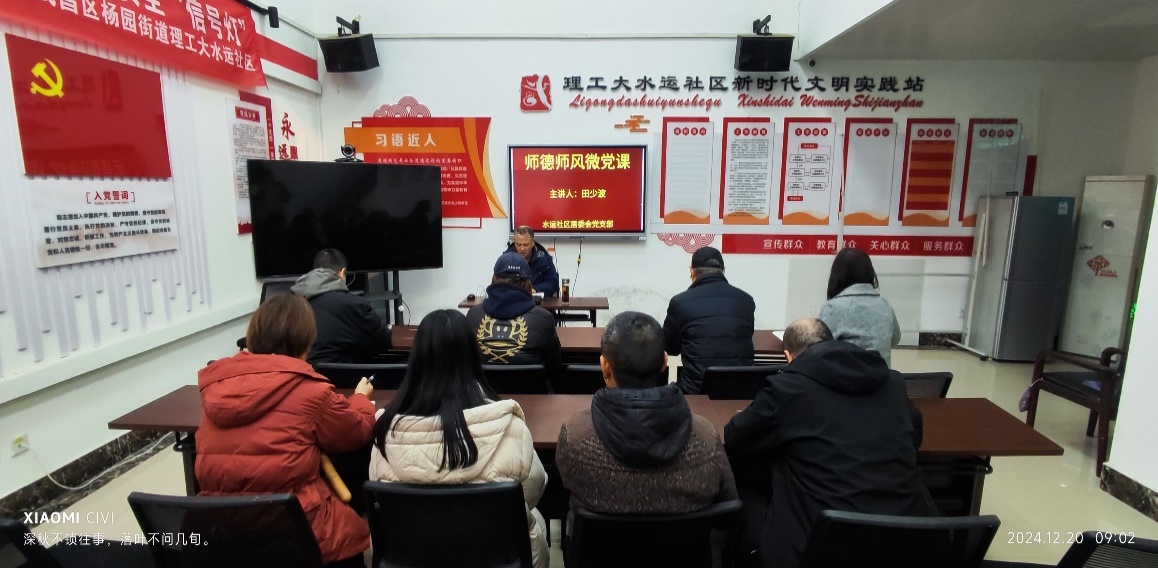 12月20日上午,余区管委会副主任兼纪委书记田少波、水运社区居委会支部书记林颖分别在水运社区会议室讲授了师德师风微党课和支部书记微党课。