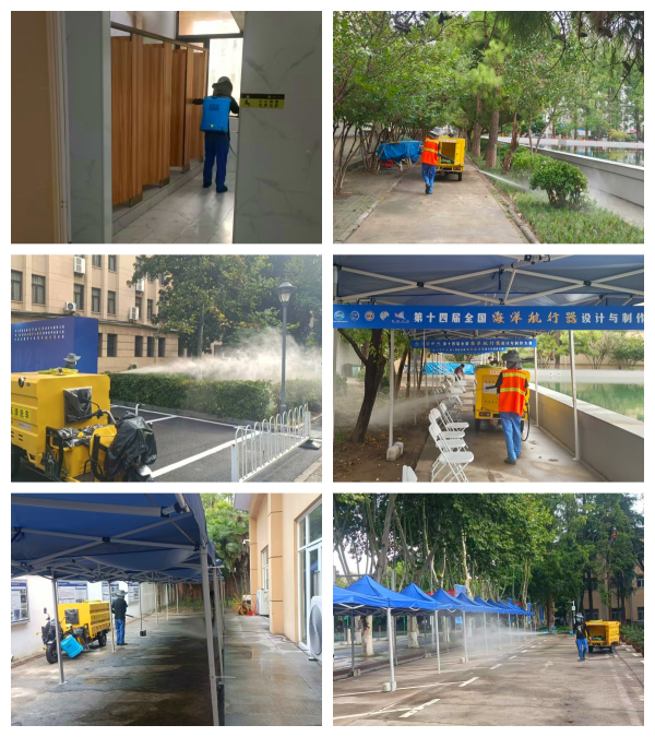 此次行动重点针对教学楼、家属区、图书馆、学生宿舍、大船池、就业广场等人员密集场所,以及排水沟、绿化带、下水道、卫生死角等蚊虫孳生区域,实施了滞留喷洒。作业过程中,工作人员严格执行药物配比标准,规范器械操作流程,确保消杀工作安全高效。同时,工作人员加强卫生清洁,及时清扫积水、垃圾等蚊虫孳生地,从源头阻断病媒传播风险。