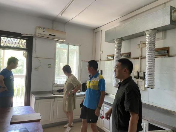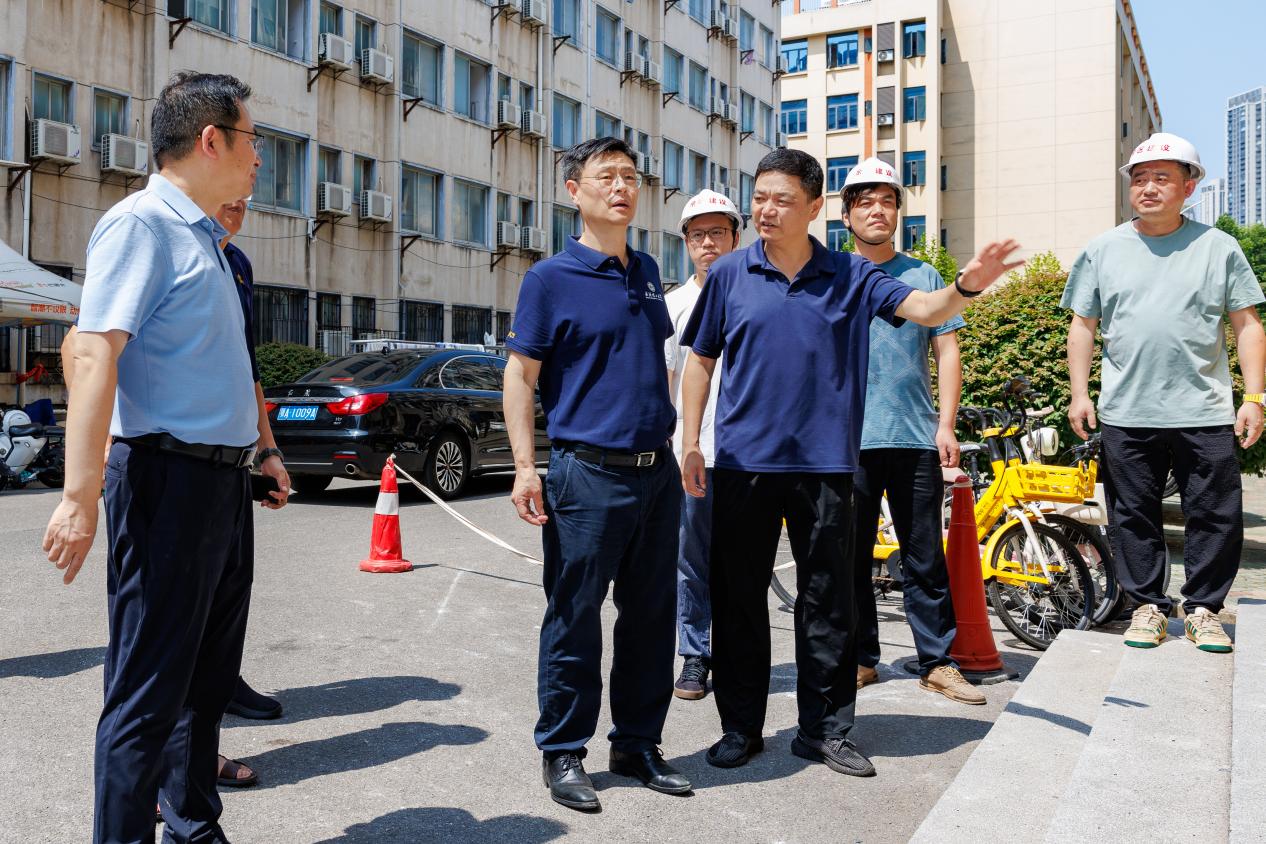 7月16日,校长王发洲、副校长沈革武深入施工现场,听取工程项目进展汇报,检查工程项目施工情况,并对在高温天气下坚守岗位的工作人员送上诚挚问候。暑期施工期间,余区管委会负责同志多次前往工程项目现场指导检查,从项目踏勘、方案论证到施工管理,负责人员始终紧盯施工一线,严抓工程质量和施工安全,确保按时保质打赢暑期维修攻坚战。