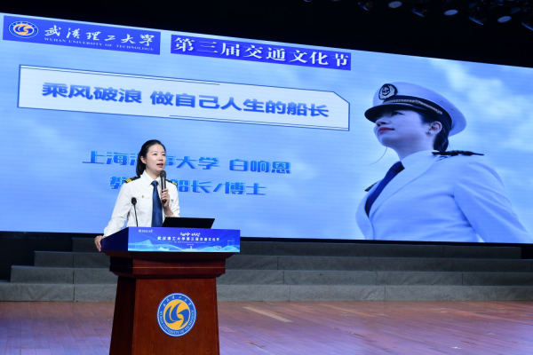 开幕式上,白响恩船长以《乘风破浪 做自己人生的船长》为题作报告,她分享了自己从一名航海技术专业学生,成长为我国第一位穿越北冰洋的女航海驾驶员、高校优秀青年教师和科普志愿者的经历,她勉励同学们“在最好的时代,成为自己的船长,驶向更加广阔的未来”。同时在海虹学生社区就业服务广场,1986届校友、中国船级社重大项目高级顾问罗肖锋校友开展《新能源水上应用技术发展与展望》专题讲座。
